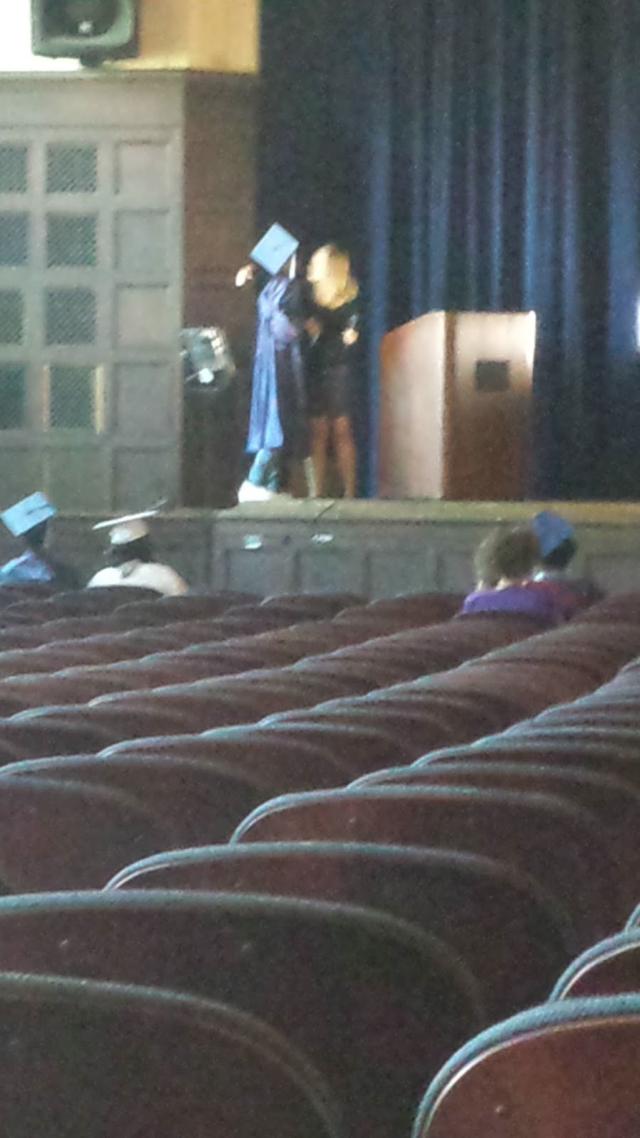 On Monday of this week, my administration changed the dates so that we'd have school on Thursday instead of a few meetings. We rolled with the punches, and Chelsie came to school with me. Then, on Tuesday, they decided there would be a graduation ceremony for the summer graduates during the day. Again, we rolled with the punches and got coverage for my class. Five minutes before the ceremony they told us that the senior advisors would be speaking...and I am a senior advisor. The ceremony was rushed and my speech was little better than rambling, but the whole experience was so quintessential it made me laugh.